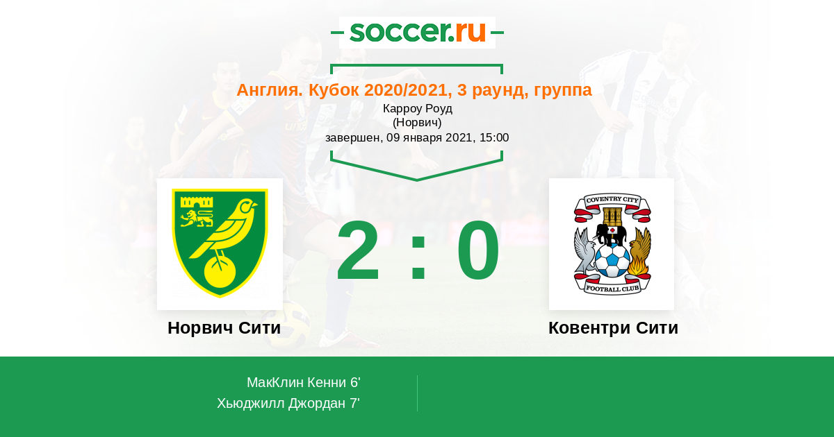Норвич Сити - Ковентри Сити: обзор матча 9 января 2021