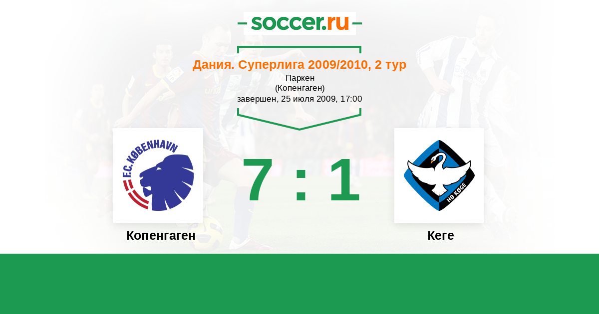 Копенгаген - Кеге: обзор матча 25 июля 2009