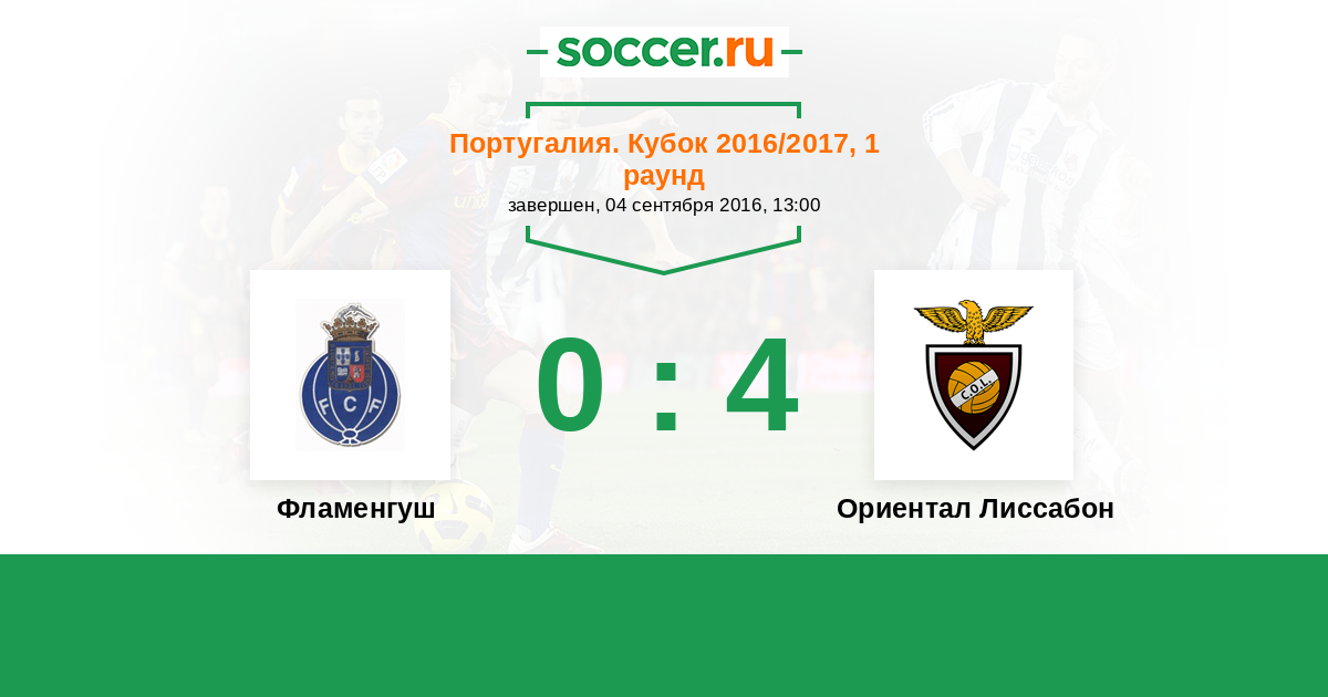 Фламенгуш - Ориентал Лиссабон: обзор матча 4 сентября 2016