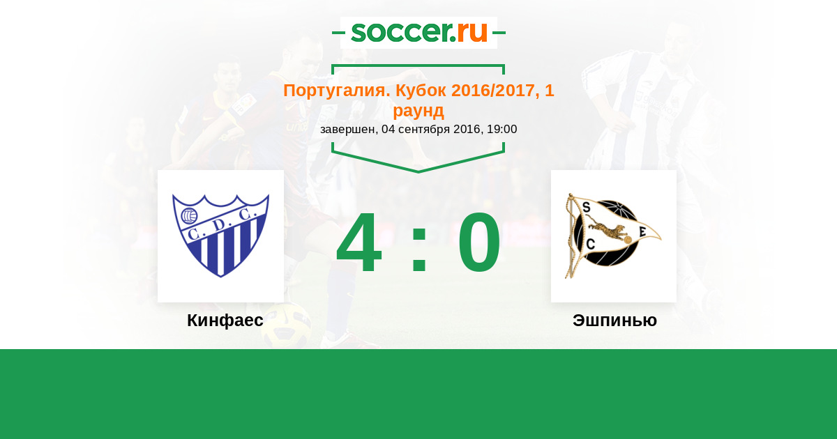 Кинфаес - Эшпинью: обзор матча 4 сентября 2016