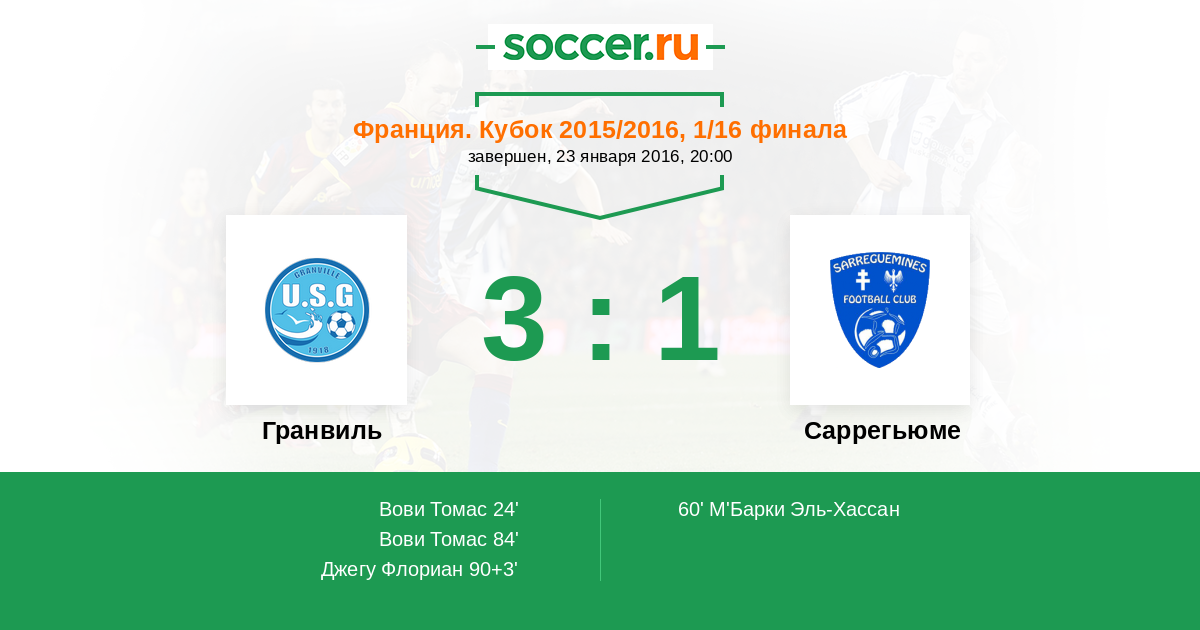 Гранвиль - Саррегьюме: обзор матча 23 января 2016