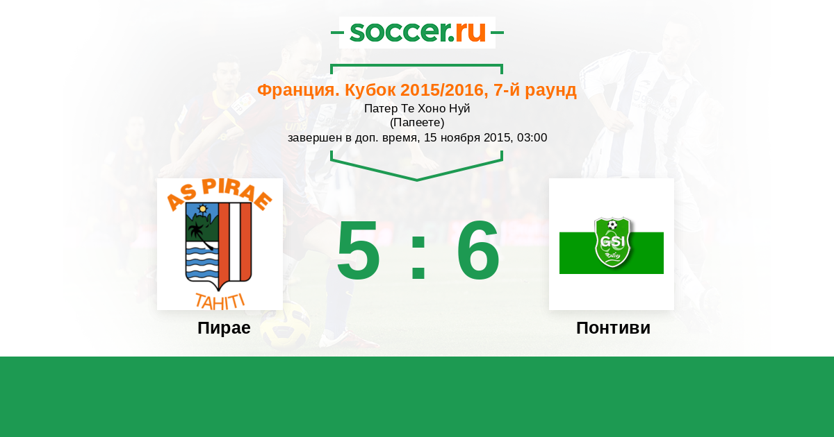 Пирае - Понтиви: обзор матча 15 ноября 2015