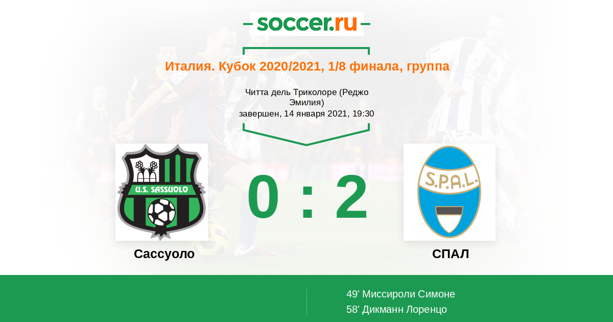 Сассуоло - СПАЛ: обзор матча 14 января 2021