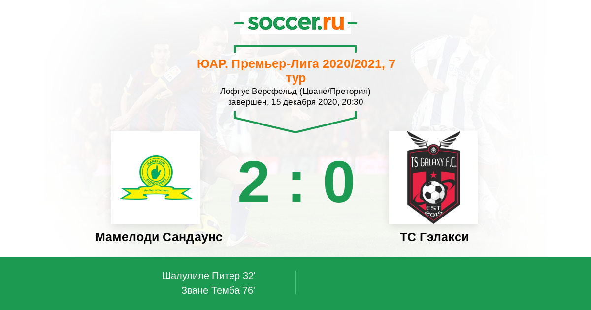 Мамелоди Сандаунс - ТС Гэлакси: обзор матча 15 декабря 2020