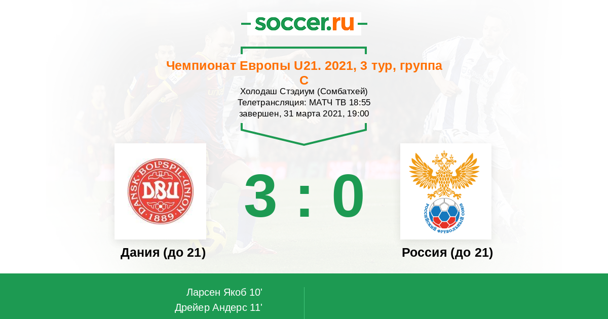 Дания (до 21) - Россия (до 21): обзор матча 31 марта 2021