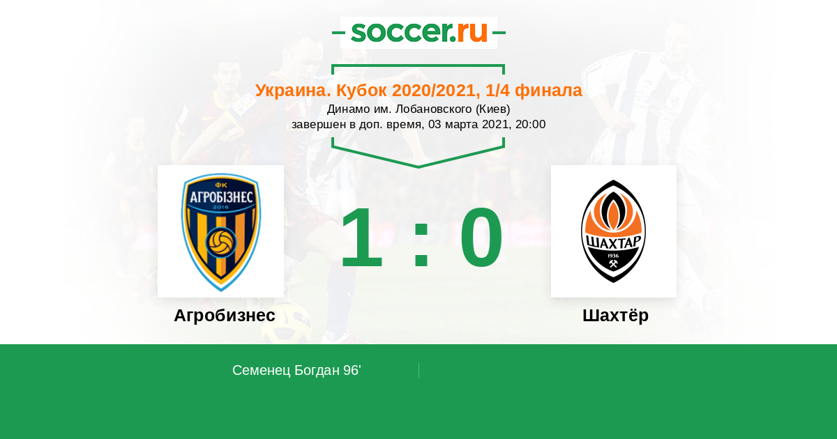 Агробизнес - Шахтёр: обзор матча 3 марта 2021