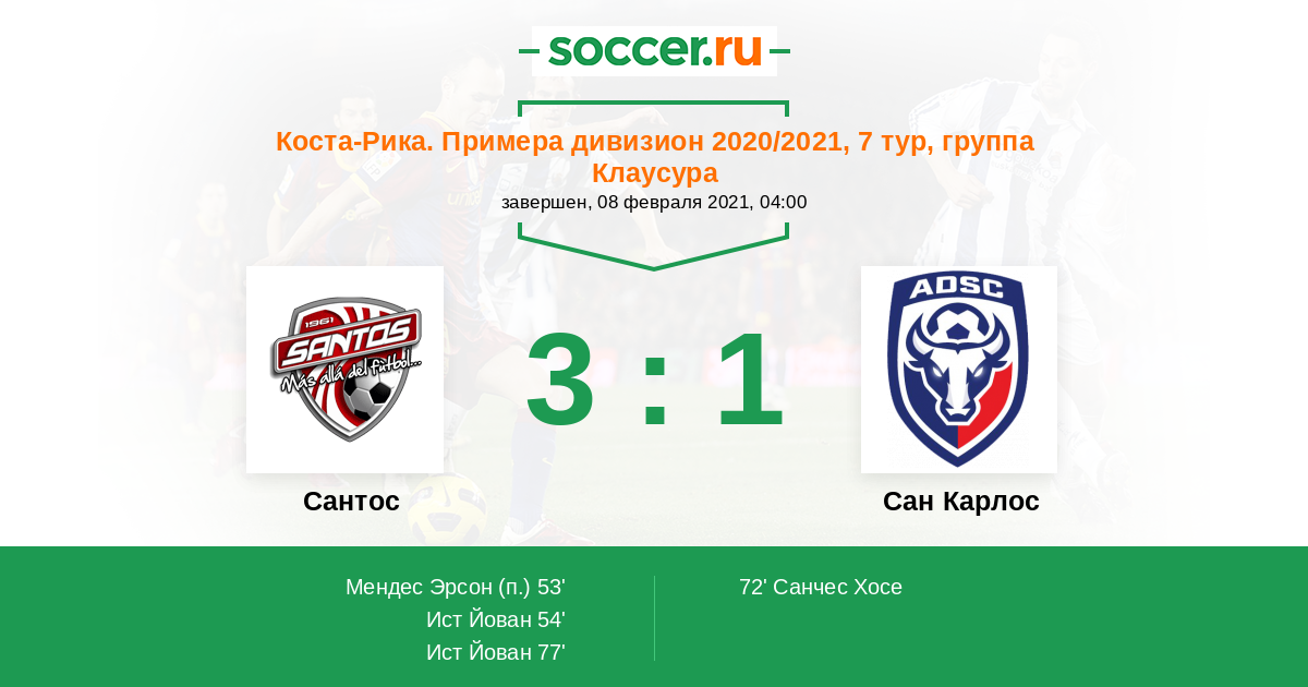 Сантос - Сан Карлос: обзор матча 8 февраля 2021