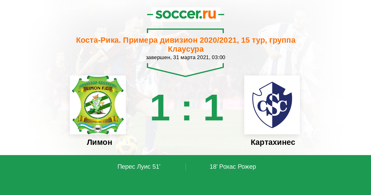 Лимон - Картахинес: обзор матча 31 марта 2021