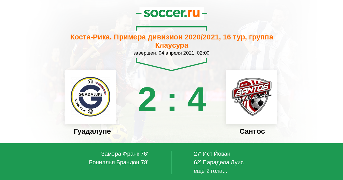 Гуадалупе - Сантос: обзор матча 4 апреля 2021