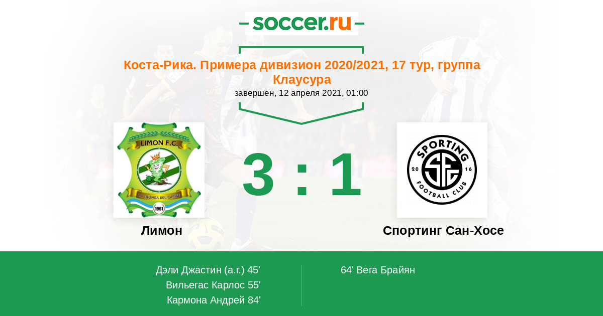 Лимон - Спортинг Сан-Хосе: обзор матча 12 апреля 2021