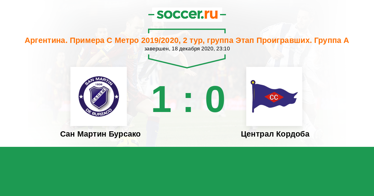 Сан Мартин Бурсако - Централ Кордоба: обзор матча 18 декабря 2020