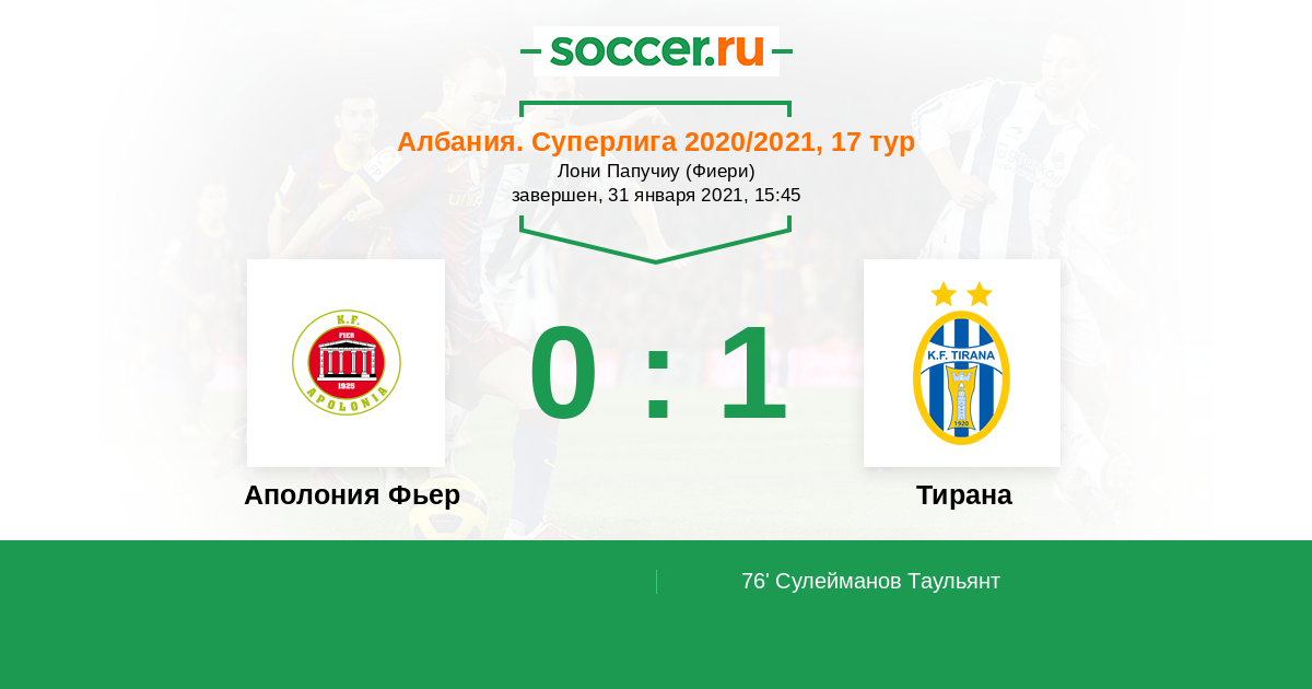Аполония Фьер - Тирана: обзор матча 31 января 2021
