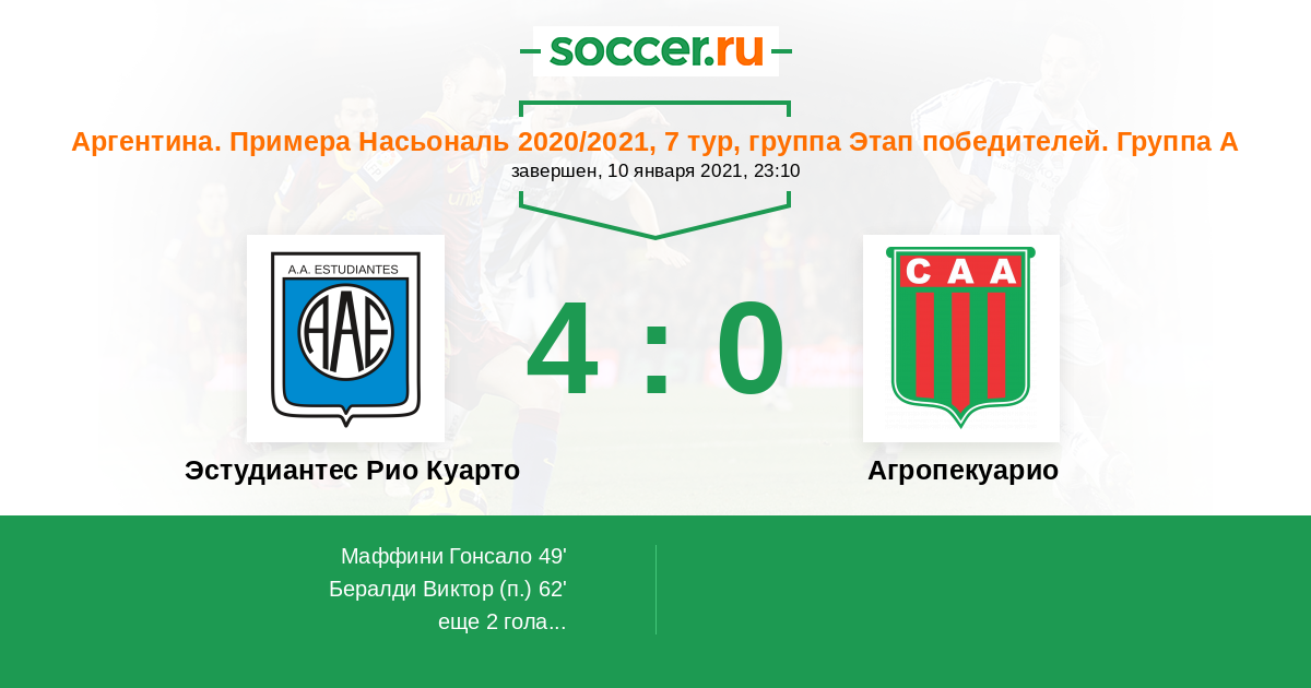 Эстудиантес Рио Куарто - Агропекуарио: обзор матча 10 января 2021