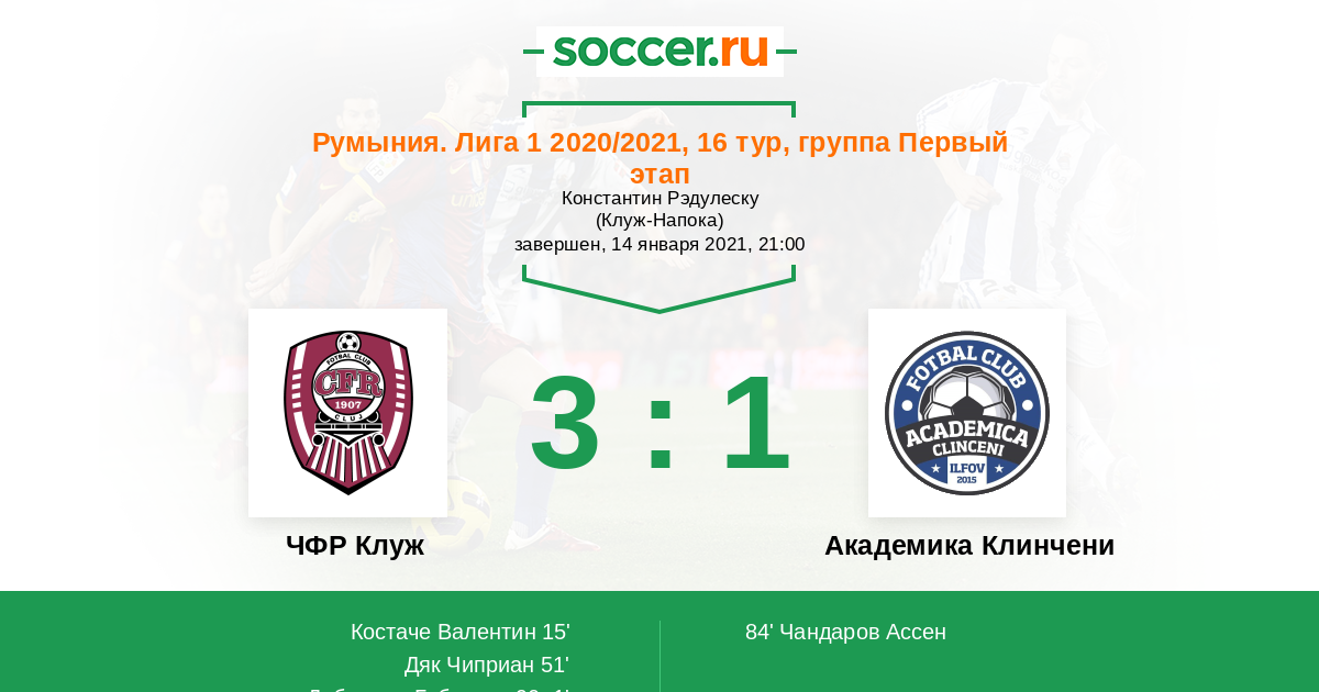 ЧФР Клуж - Академика Клинчени: обзор матча 14 января 2021