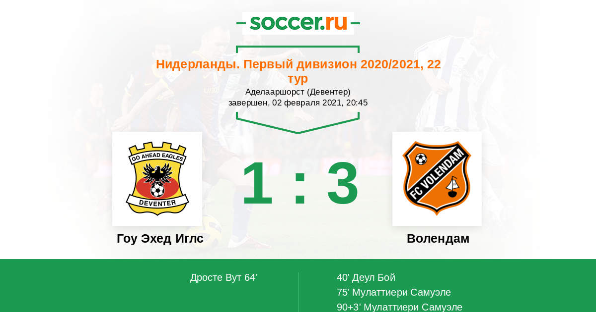 Гоу Эхед Иглс - Волендам: обзор матча 2 февраля 2021