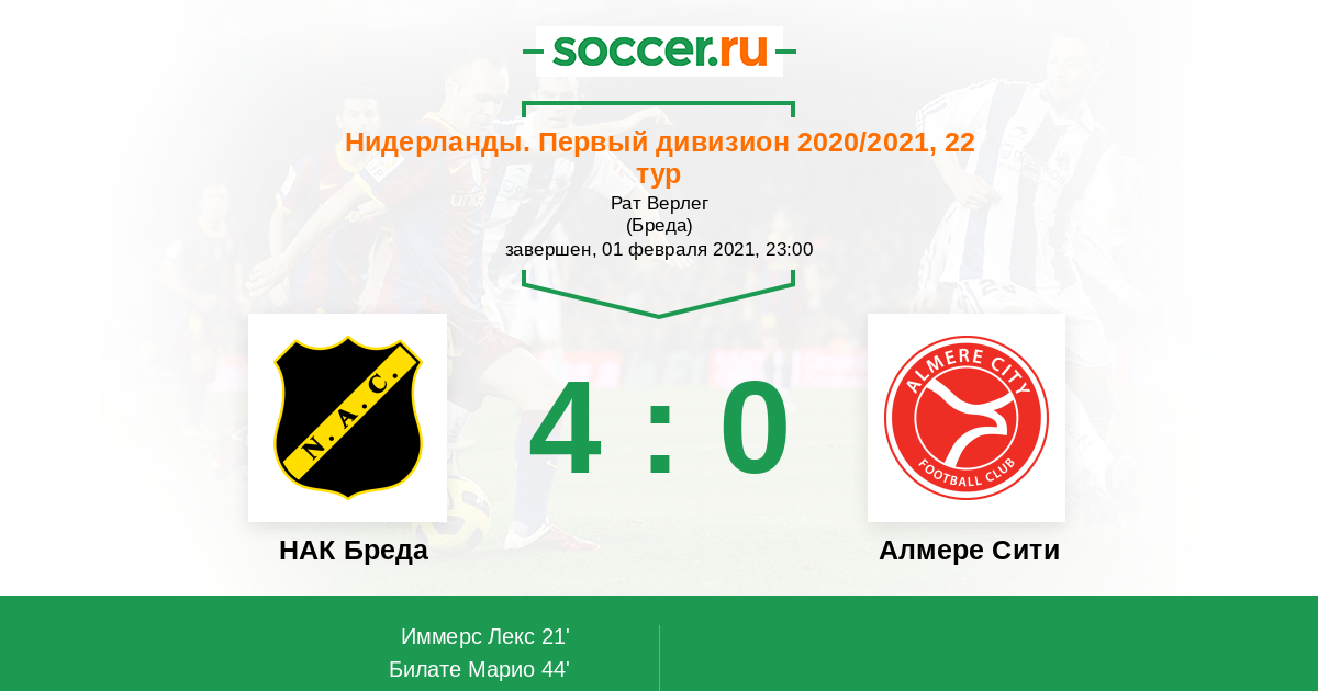 НАК Бреда - Алмере Сити: обзор матча 1 февраля 2021