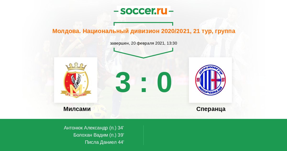 Милсами - Сперанца: обзор матча 20 февраля 2021