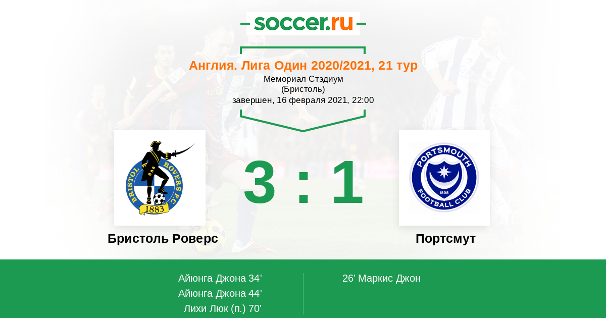 Бристоль Роверс - Портсмут: обзор матча 16 февраля 2021