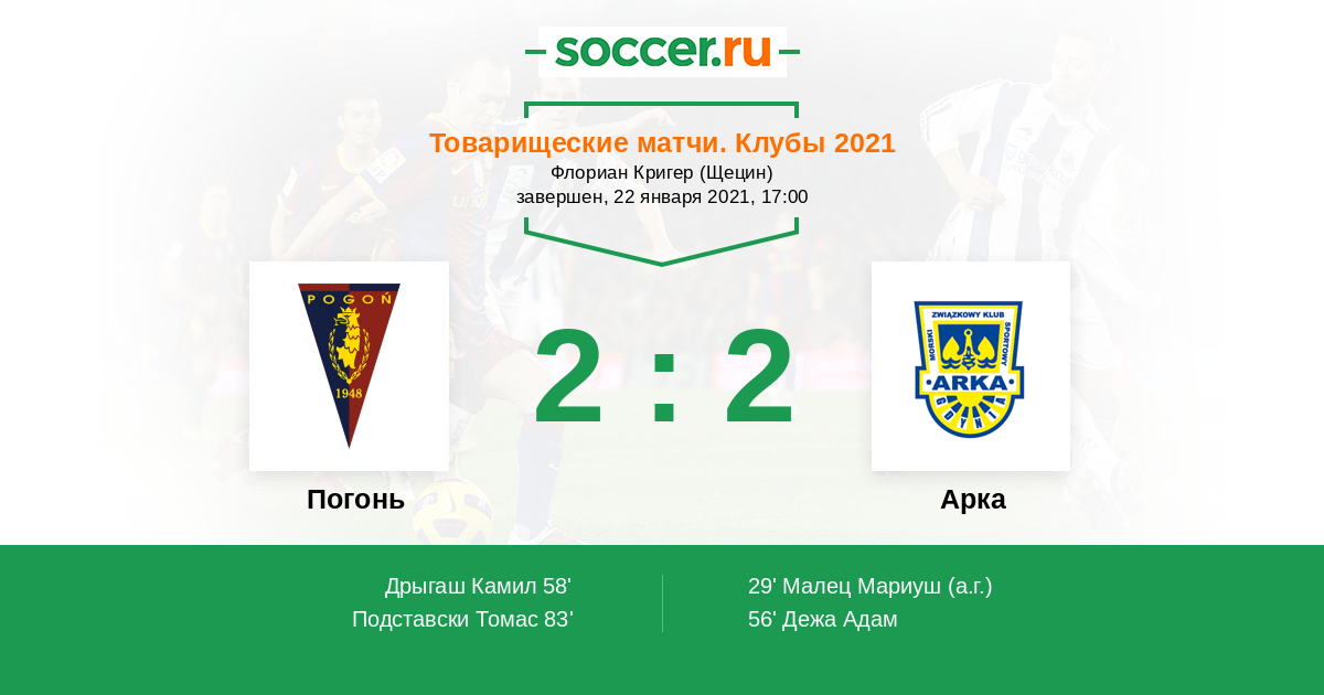 Погонь - Арка: обзор матча 22 января 2021