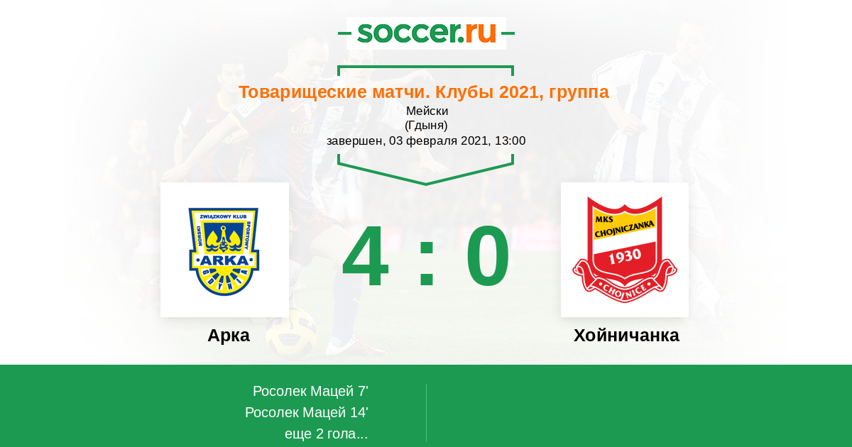 Арка - Хойничанка: обзор матча 3 февраля 2021