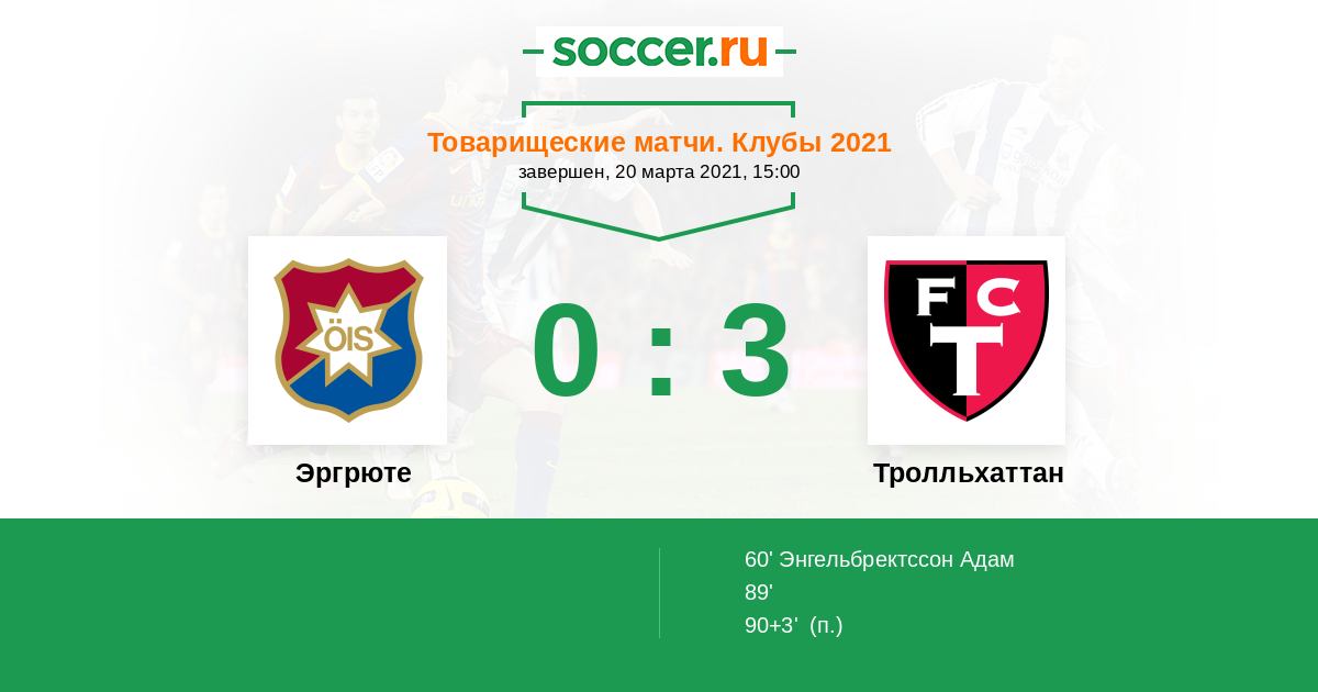 Эргрюте - Тролльхаттан: обзор матча 20 марта 2021