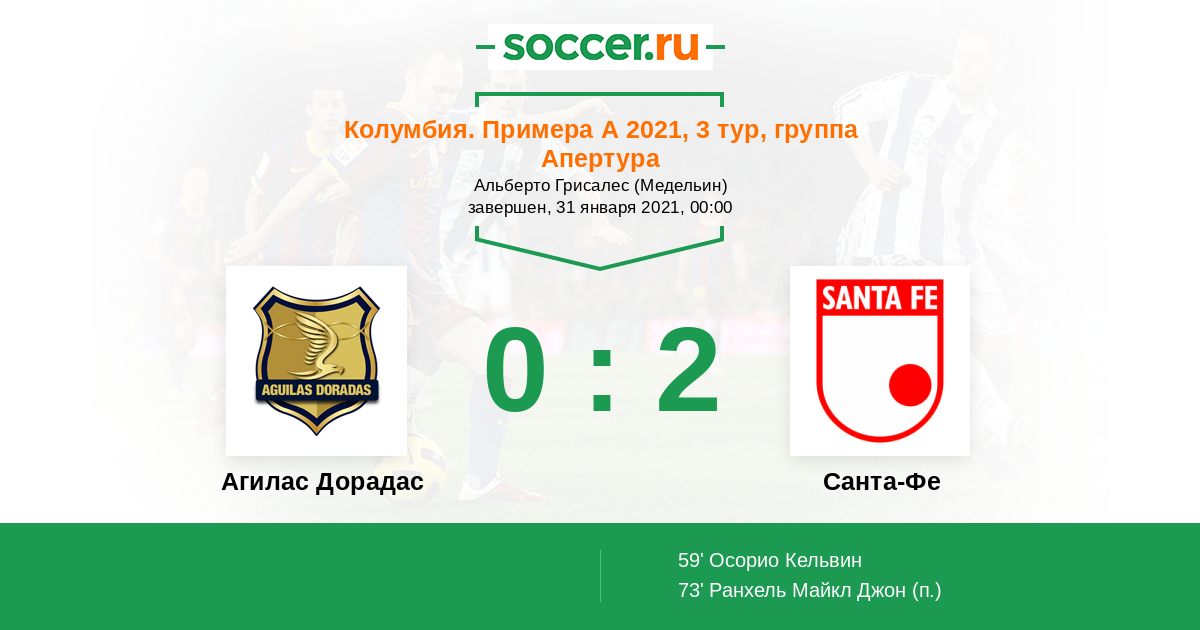 Агилас Дорадас - Санта-Фе: обзор матча 31 января 2021