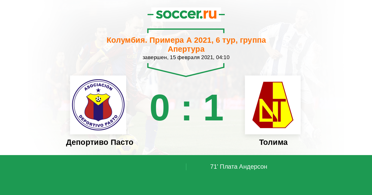 Депортиво Пасто - Толима: обзор матча 15 февраля 2021