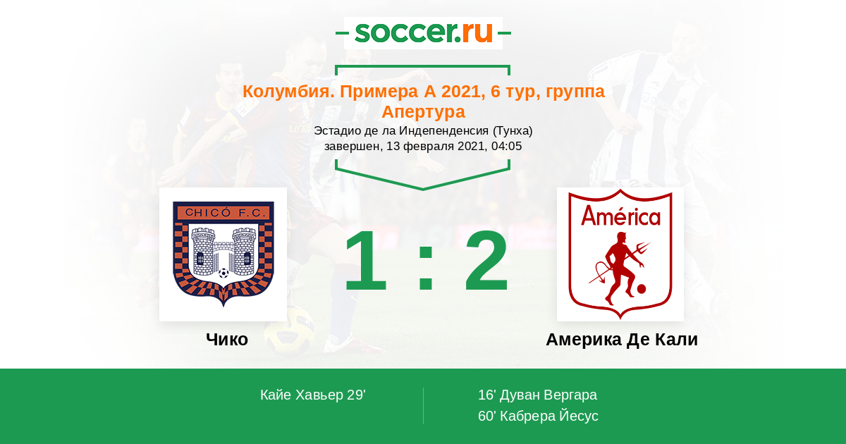 Чико - Америка Де Кали: обзор матча 13 февраля 2021
