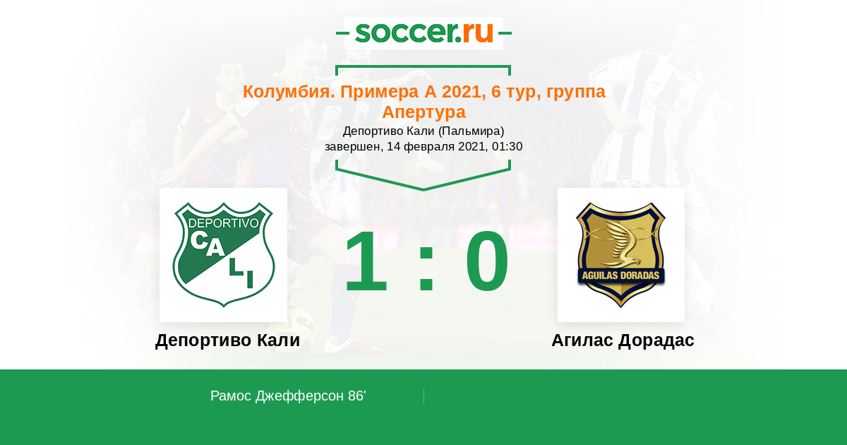 Депортиво Кали - Агилас Дорадас: обзор матча 14 февраля 2021