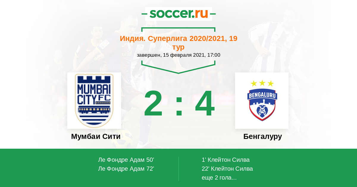 Мумбаи Сити - Бенгалуру: обзор матча 15 февраля 2021