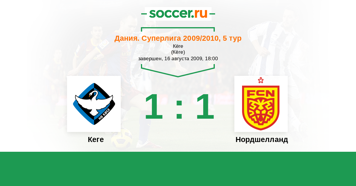 Кеге - Нордшелланд: обзор матча 16 августа 2009