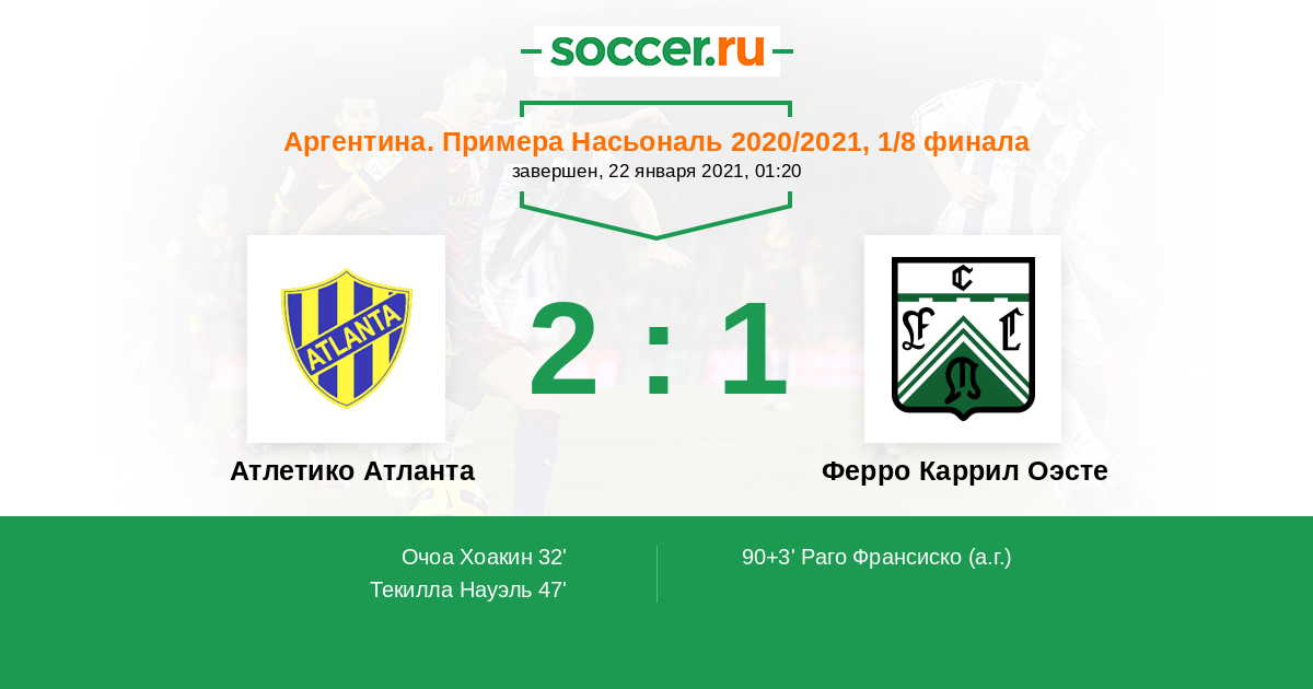 Атлетико Атланта - Ферро Каррил Оэсте: обзор матча 22 января 2021