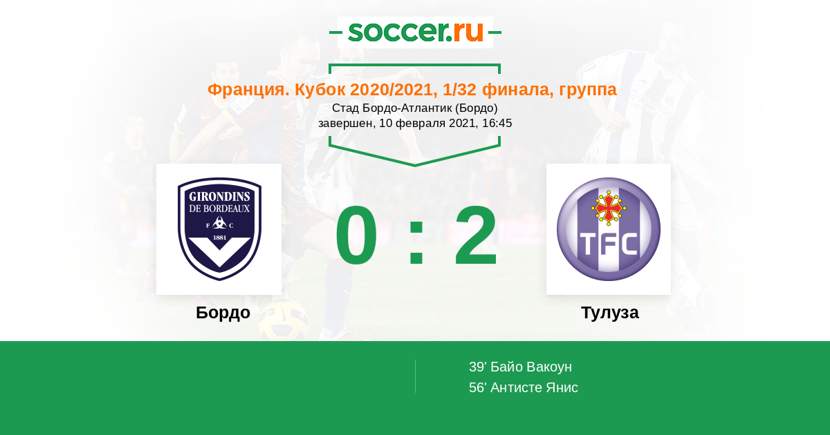 Бордо - Тулуза: обзор матча 10 февраля 2021