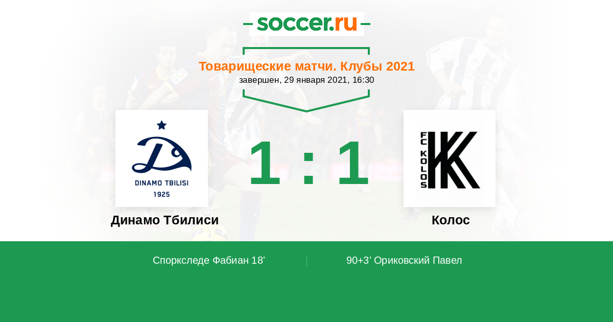 Динамо Тбилиси - Колос: обзор матча 29 января 2021