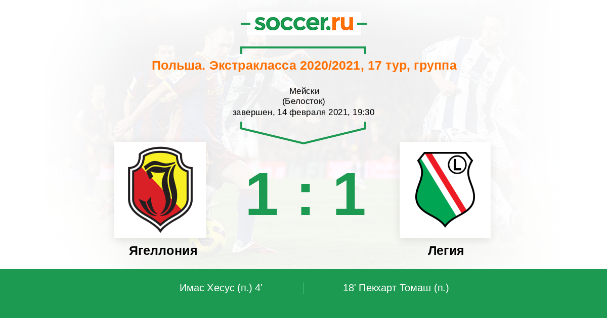 Ягеллония - Легия: обзор матча 14 февраля 2021