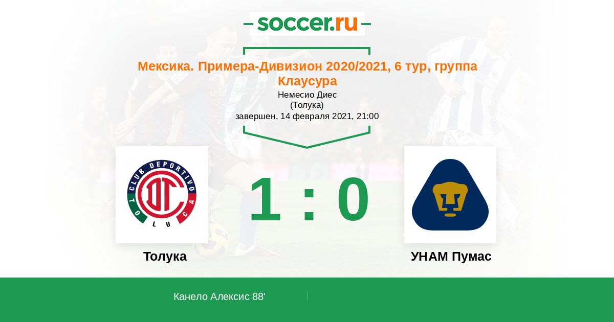 Толука - УНАМ Пумас: обзор матча 14 февраля 2021