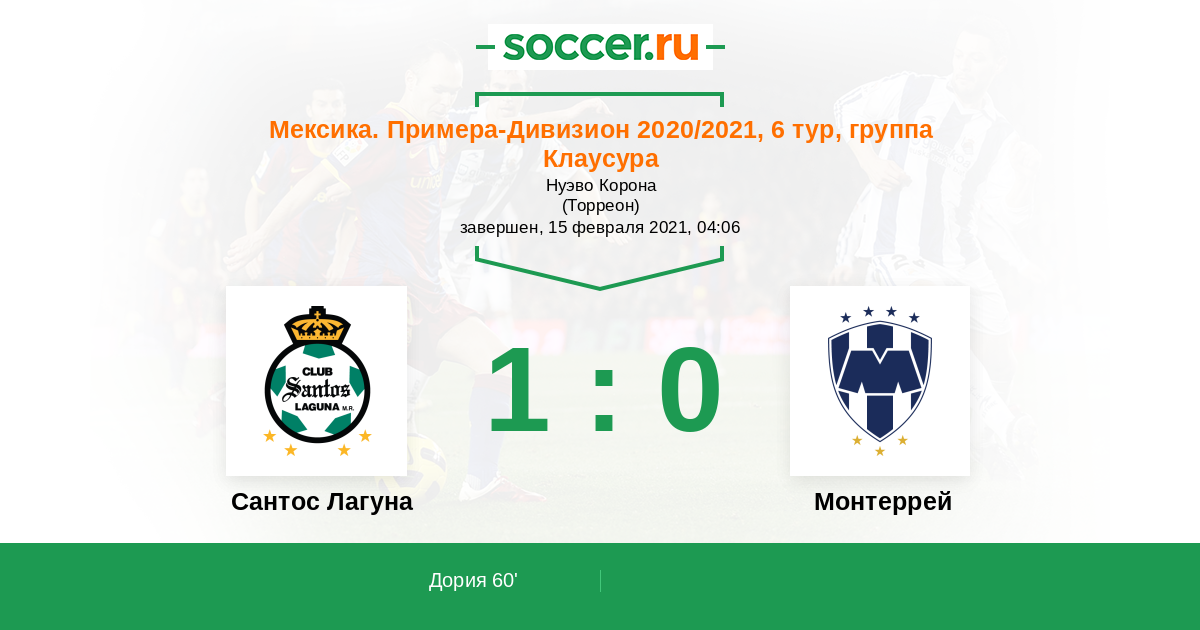 Сантос Лагуна - Монтеррей: обзор матча 15 февраля 2021