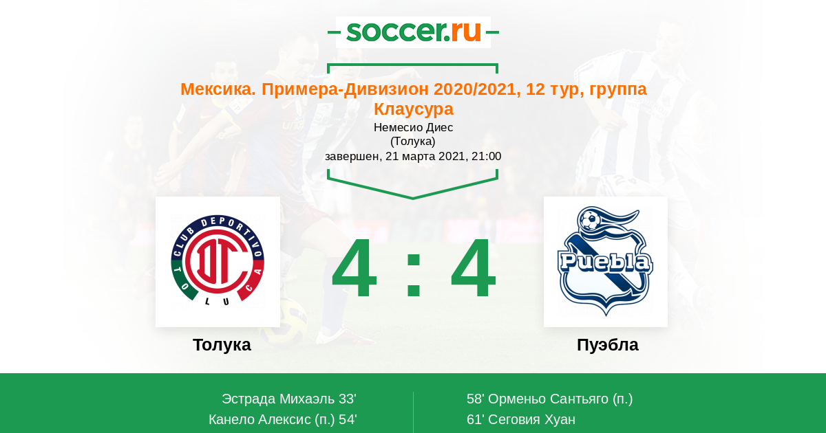 Толука - Пуэбла: обзор матча 21 марта 2021