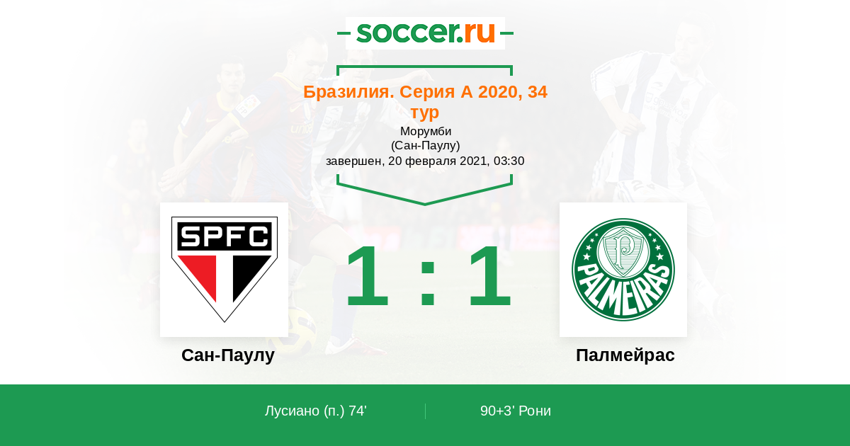 Сан-Паулу - Палмейрас: обзор матча 20 февраля 2021