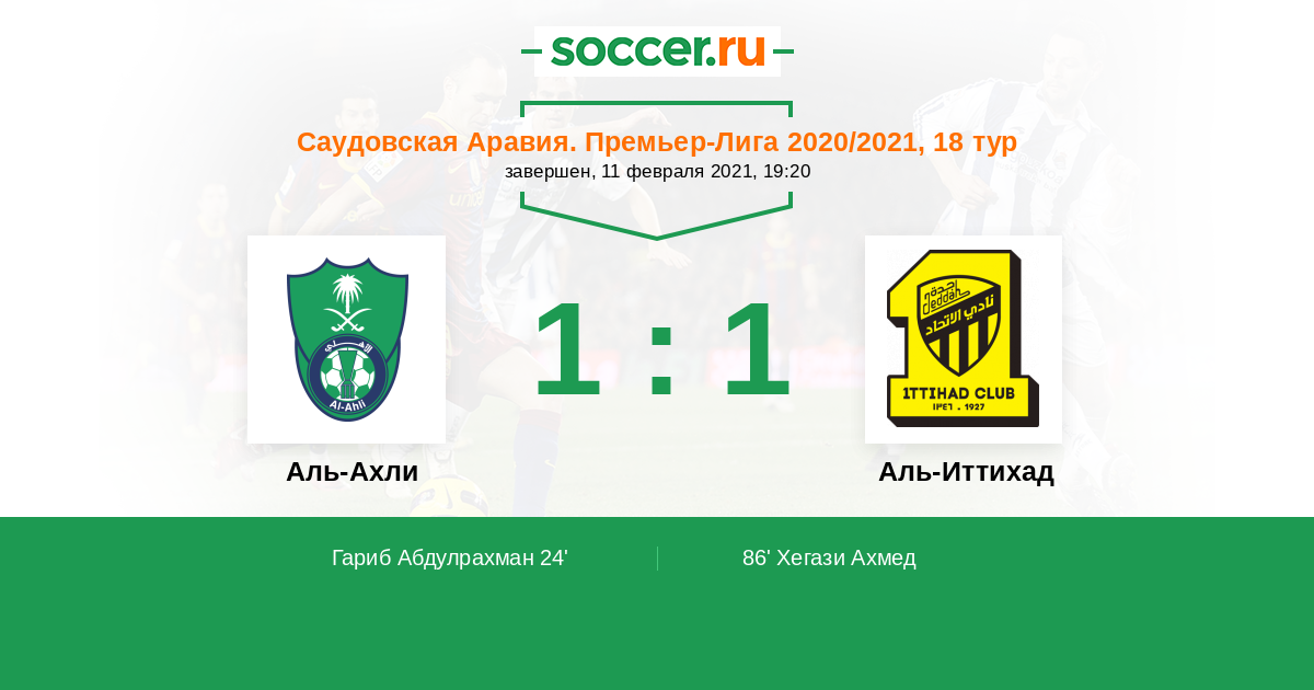 Аль-Ахли - Аль-Иттихад: обзор матча 11 февраля 2021