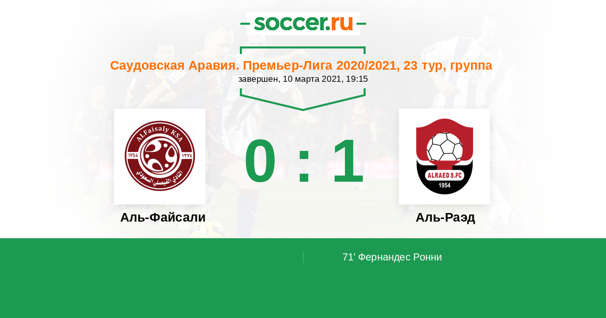 Аль-Файсали - Аль-Раэд: обзор матча 10 марта 2021