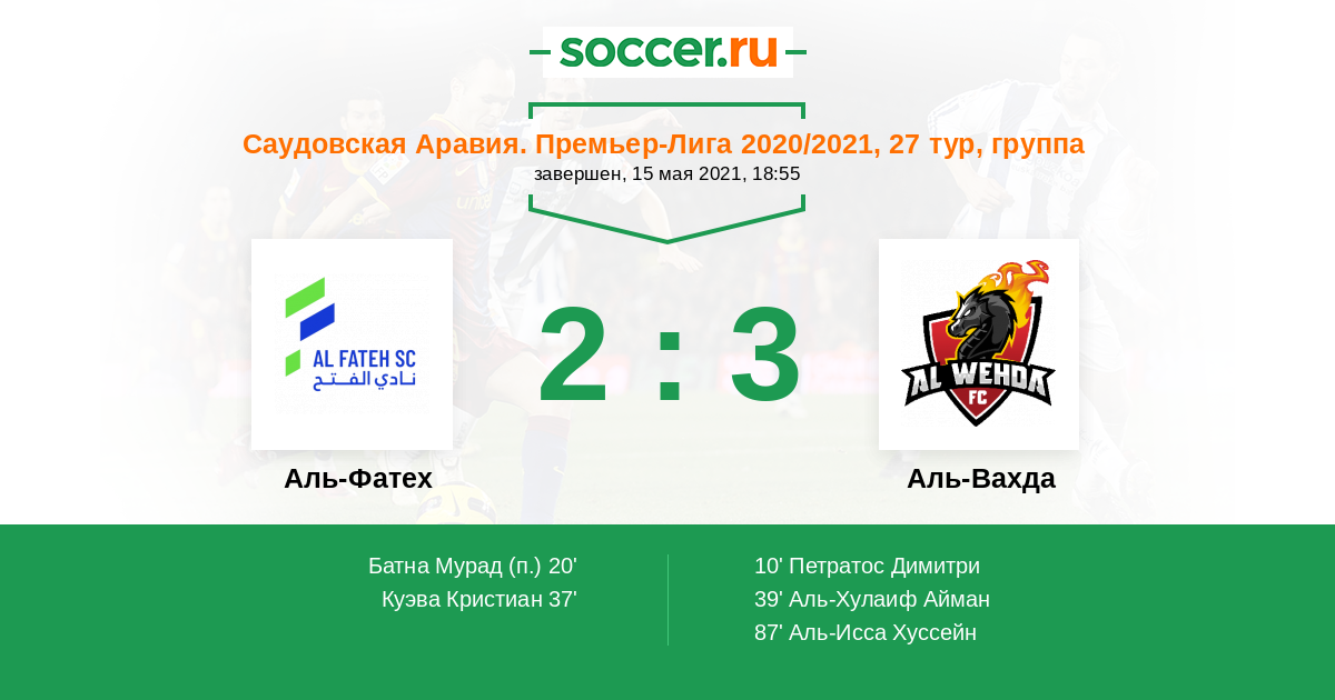 Аль-Фатех - Аль-Вахда: обзор матча 15 мая 2021
