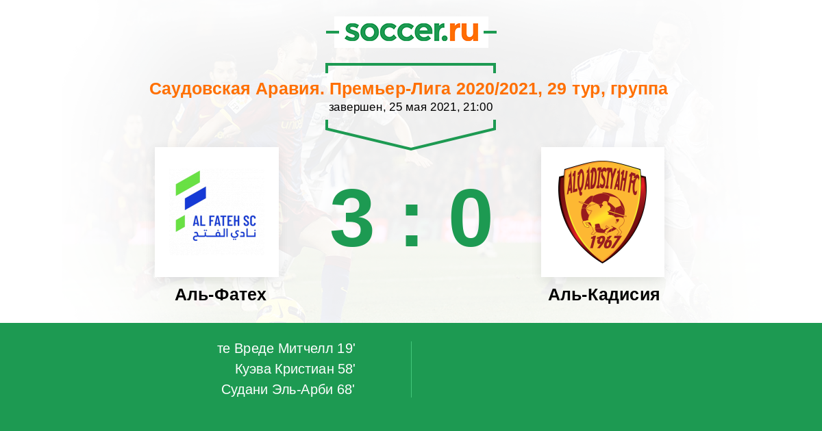 Аль-Фатех - Аль-Кадисия: обзор матча 25 мая 2021