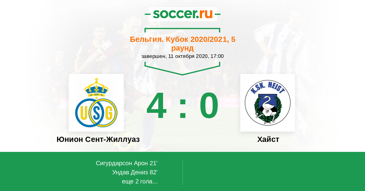 Юнион Сент-Жиллуаз - Хайст: обзор матча 11 октября 2020