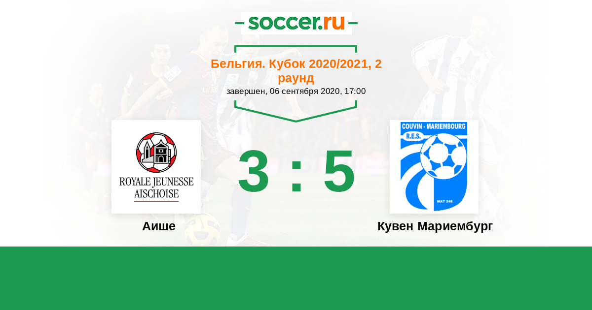 Аише - Кувен Мариембург: обзор матча 6 сентября 2020