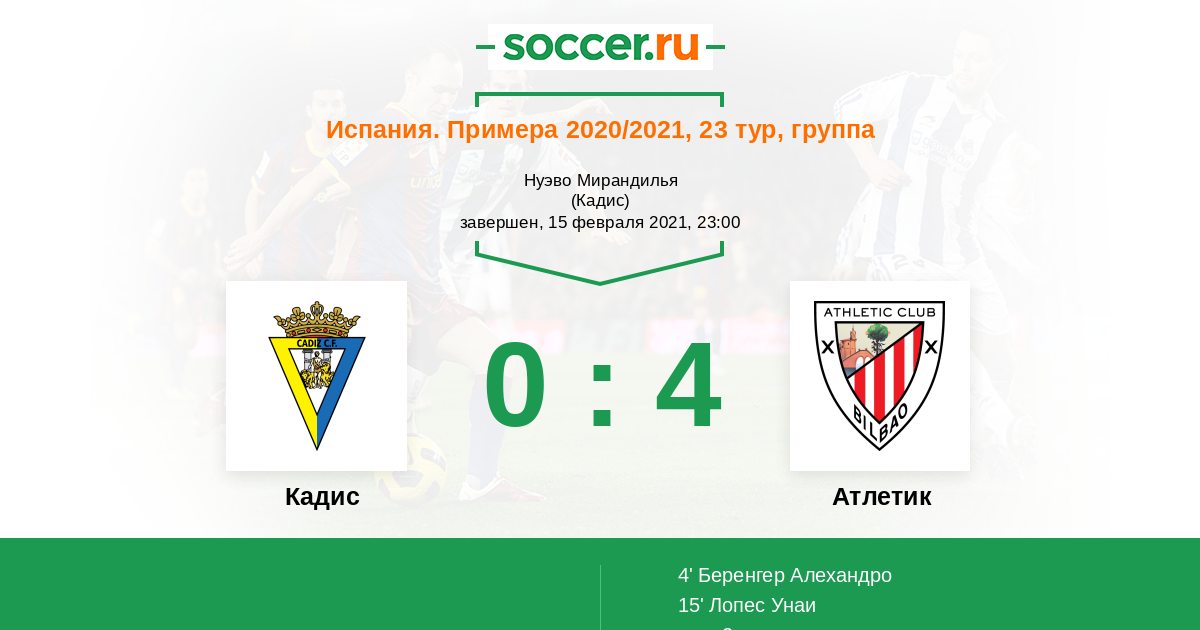 Кадис - Атлетик: обзор матча 15 февраля 2021