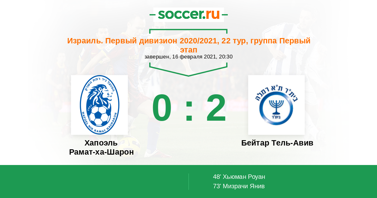 Хапоэль Рамат-ха-Шарон - Бейтар Тель-Авив: обзор матча 16 февраля 2021