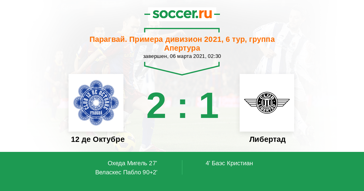 12 де Октубре - Либертад: обзор матча 6 марта 2021