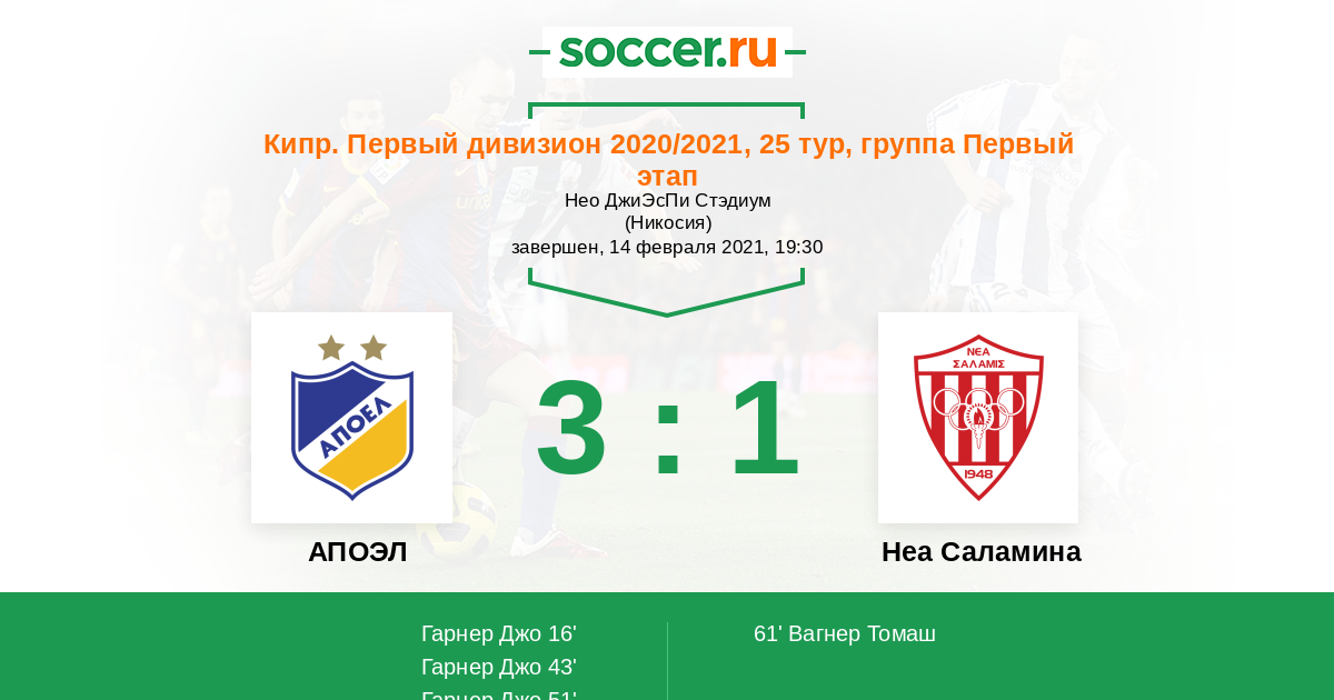 АПОЭЛ - Неа Саламина: обзор матча 14 февраля 2021