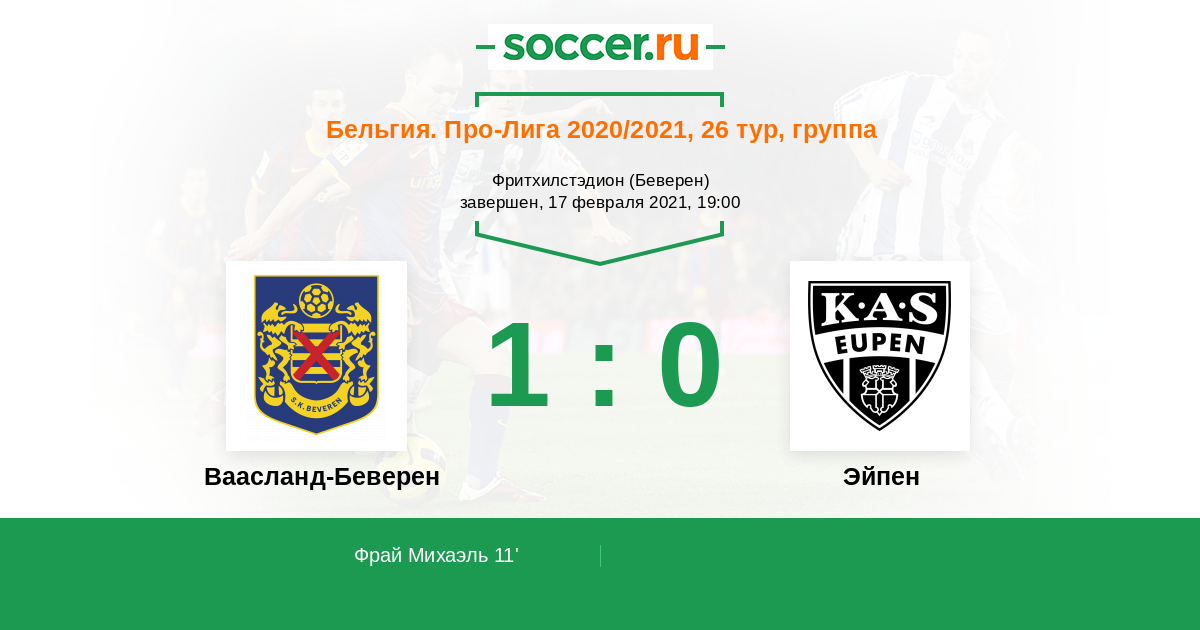 Ваасланд-Беверен - Эйпен: обзор матча 17 февраля 2021